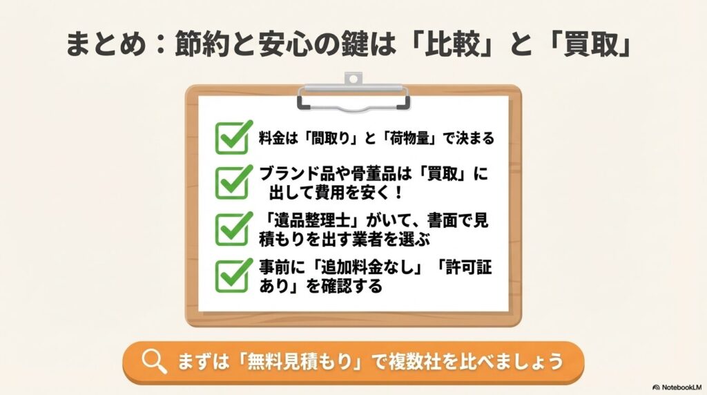 まとめ:那覇市の遺品整理は「比較」と「買取活用」が節約の鍵