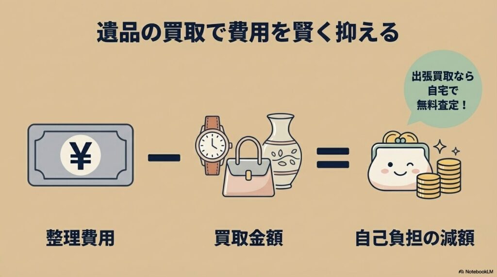 前のセクションでも解説した通り、価値のある遺品を買取に出すことで費用を大幅に節約できます。整理前に一度査定に出してみましょう。